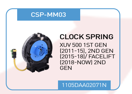 Don’t ignore the warning signs! Replace your worn-out part with the durable CSP-MM03 Clock Spring and restore full functionality and safety to your Mahindra XUV500.