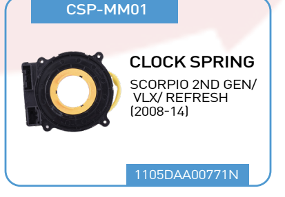 Restore critical safety and electronic functionality to your Mahindra Scorpio with this High-Quality Clock Spring Assembly (Part No. CSP-MM01).